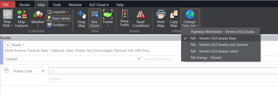 You may also have multiple sets of street-level data in North America as it is regularly updated between versions of PC*MILER. That includes the base version data (called Base), as well as more recently released data set updates (called Last or Latest).